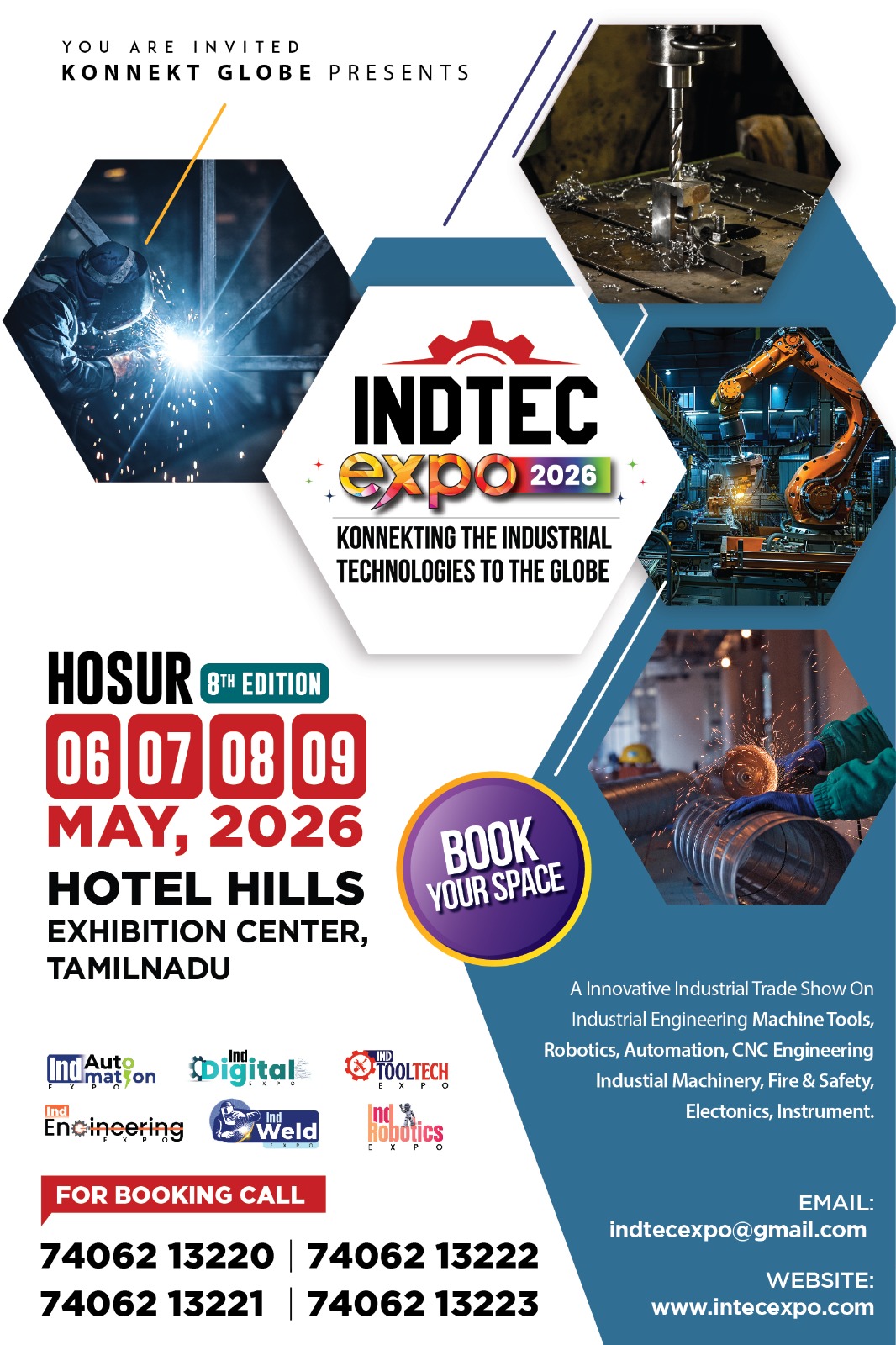 IndTec Expo 2026 is India’s premier platform showcasing cutting-edge industrial technologies, automation, machinery, tools, and next-gen manufacturing innovations. The expo brings together industry leaders, manufacturers, suppliers, engineers, and decision-makers under one roof.The event serves as a powerful hub for technology exchange, product demonstrations, and the knowledge sharing. With a strong focus on Industry 4.0, smart manufacturing, robotics, material handling, digital production systems, and sustainable industrial solutions, the expo empowers companies to accelerate growth and stay competitive in a rapidly to the evolving market.Visitors can experience live machinery demos, discover breakthrough technologies, interact with global brands, attend technical sessions, and unlock the new sourcing of opportunities. Whether you're a buyer, manufacturer, trader, distributor, industrial consultant, or technology provider, IndTec Expo 2026 offers unmatched opportunities to connect, collaborate, and scale innovation across multiple sectors.